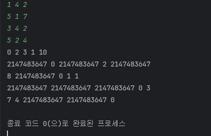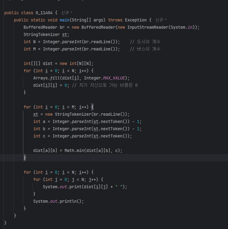 dist[i][i] = 0; // 자기 자신으로 가는 비용은 0