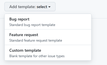 해당 드롭 다운을 누르면 github 기본 템플릿과 커스텀 템플릿이 있는데