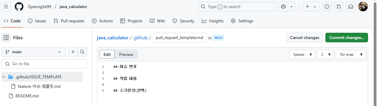 [JAVA][계산기 만들기-1] github 라벨 편집, Issue Template 생성, PR Template 생성 본문