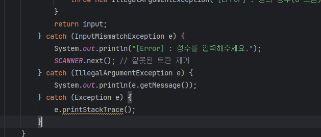 System.out.println("[Error] : 정수를 입력해주세요.");