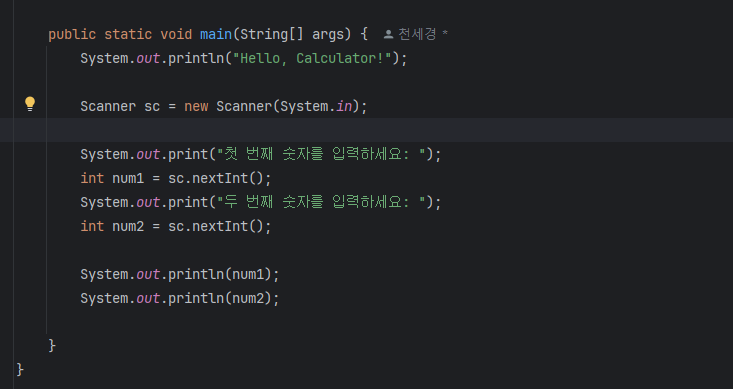 일단 Calculator라는 패키지와 클래스를 만들고 해당 위치에 main함수를 입력하여 진행하기로 한다!