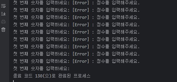 그런데 요구사항은 양의 정수만 받아야 하기 때문에 양의 정수가 아닐경우에 다시 받아야할 것 같다.
